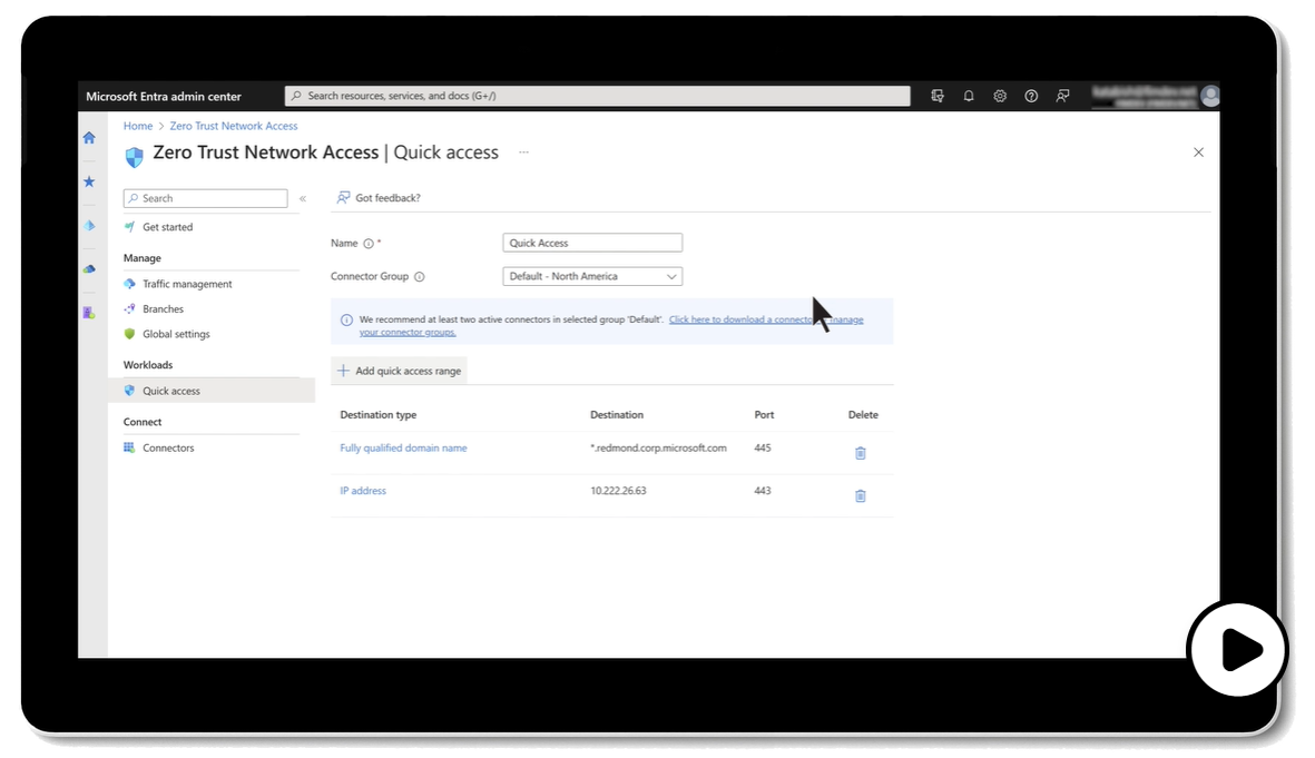 Microsoft Entra 专用访问基于零信任原则构建,有助于消除风险并提高用户生产力。 快速、安全地将任何设备和任何网络的用户连接到专用应用 - 本地以及跨任何云。